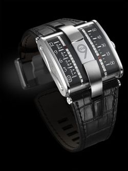 Die Uhr ist wasserdicht bis 5 Atmosphären und besteht aus Titan und Stahl und kombiniert Elemente der Apollo XI-Rakete.